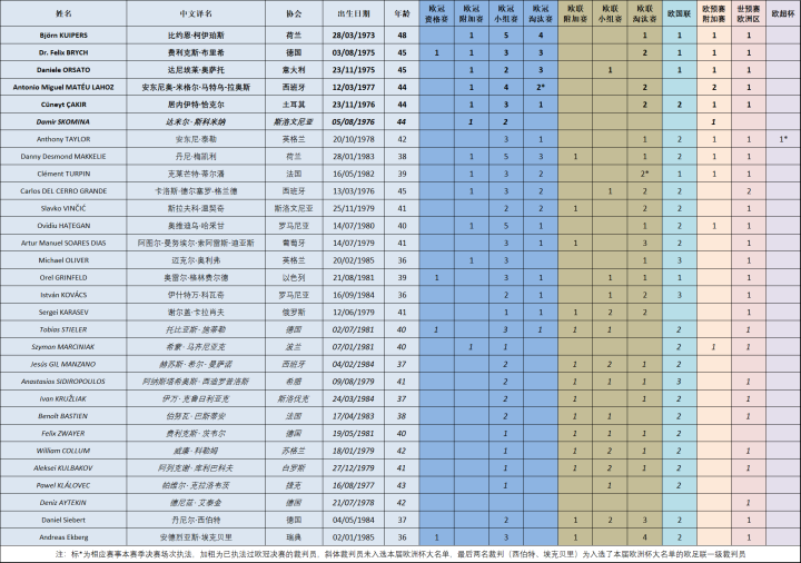 (图)2020/21赛季欧洲杯落选精英裁判员执法场次
