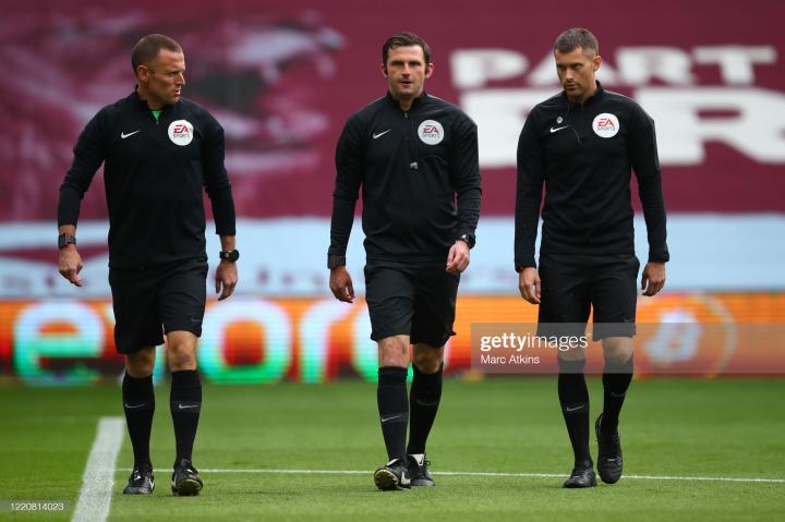 (图)裁判员-迈克尔·奥利弗(中),第一助理-斯图尔特·伯特(右),第二助理-西蒙·本内特(左)