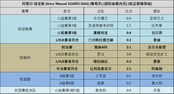 葡萄牙国哨迪亚斯生于1979年7月14日,即将迎来自己的42岁生日。迪亚斯04年起执法葡超联赛,并于2010年成为国际级裁判员。迪亚斯近年来逐渐得到了欧足联的重用,也是继葡萄牙名哨普罗恩卡后首位跻身大赛执法的葡萄牙裁判员,但其执法能力相较于普罗恩卡还有些差距,欧战中表现平平,还曾有过连场误判的情况出现,但考虑到他是葡萄牙近年来唯一的精英级裁判,欧足联还是对其予以了充分信任,本赛季执法了欧联半决赛首回合较量(比利亚雷亚尔2:1阿森纳)。值得一提的是,迪亚斯在2019年曾经来华执法中超第22轮北京人和2:2河北华夏幸福的比赛。