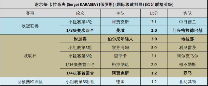 (图)卡拉肖夫本赛季执法的国际赛事场次统计