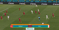 土耳其在球权转换阶段很难迅速向前展开队形,意大利得以集中围剿对手的持球人,基耶利尼盯防伊尔马兹,若日尼奥和巴雷拉等人可以轻松地利用对手阵型前后脱节的弊端来控制第二落点。