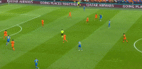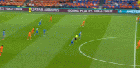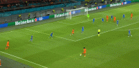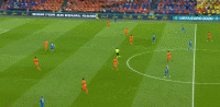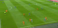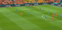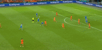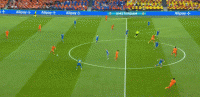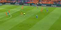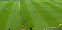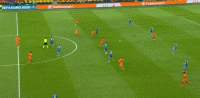 受制于“中锋阵”的特点,荷兰的前场逼抢并不是那种视觉冲击力很强的全面扑抢,而是依托边线(尤其是右侧)的围堵。一旦前场的围堵被对手破解,荷兰队会依靠中卫的前顶来配合中场绞杀,尽量延缓对手的推进速度。
