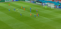 在两球领先的情况下,荷兰队依然坚持在中前场施压,保持以主动进攻压制对手的节奏。为了支撑这种打法,德波尔换下了在防守中消耗较大的布林德和范安霍尔特,试图以侵略性和向前欲望更强的阿克&温达尔来保持后场的活力,把乌克兰在这一侧的攻势压回去。