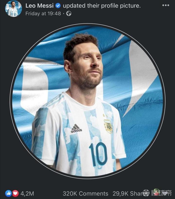 【梅西又破纪录】梅西打破了在脸书上头像点赞最多的...青茵小孟 @懂球帝2021-06-14 12:43【梅西又破纪录】梅西打破了在脸书上头像点赞最多的记录!这之前的记录保持者是前米国总统奥巴马!你觉得这个头像怎么样?[我操!]展开更多