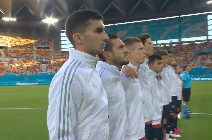 大师看天下今天凌晨,西班牙迎来了本届欧洲杯的首场比赛,最后0-0战平瑞典。赛前演奏国歌的时候,和往常一样,西班牙队员和教练组并没有张嘴唱国歌。