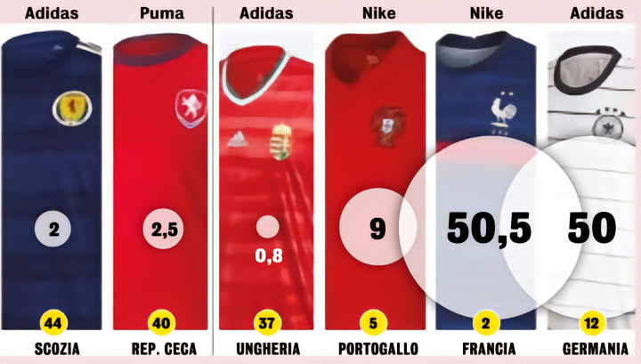 欧洲杯球衣来自6个品牌!赞助费排名出炉,世界第一太可怜