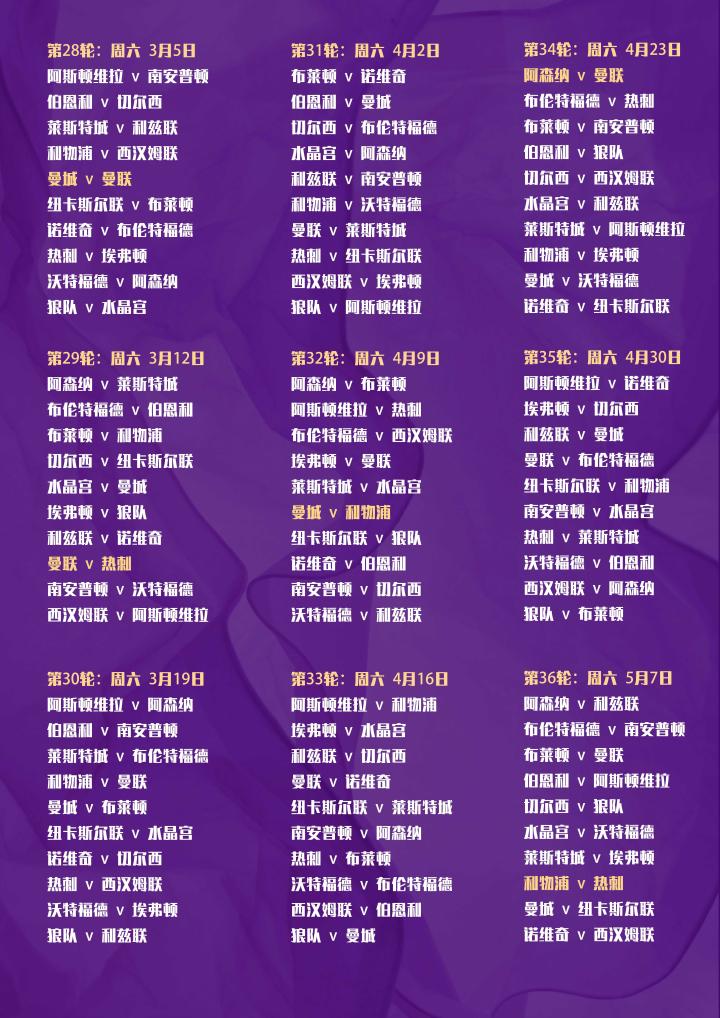 21/22赛季英超赛程公布:揭幕战8月14日,首轮热刺vs曼城
