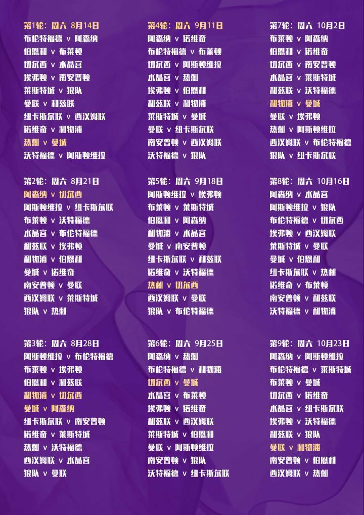 【利物浦21/22赛季英超赛程:第三轮战切尔西,10月战曼市双雄】