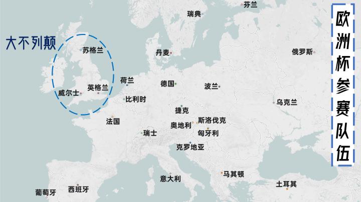 本届欧洲杯,英国在大不列颠岛上的三个部分,英格兰、苏格兰和威尔士都获得了决赛圈参赛资格,占总参赛球队的八分之一,尤其是英格兰和苏格兰还在同一个小组直接面对面,很有看头。