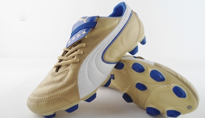 再这之后,各种金靴就开始逐渐泛滥。2006年世界杯后,意大利夺冠,puma是意大利的赞助商,乘着这个机会,puma也出了几双金靴。其中下面这双算是大陆货级别,puma king exec italia。虽然别的四星战靴都比较高贵,级别都是限量,但exec这个款是个特例。