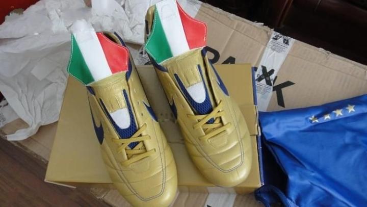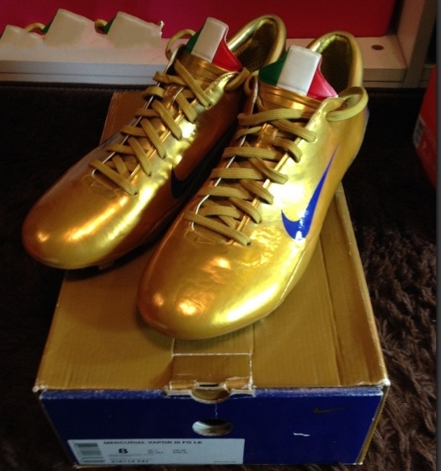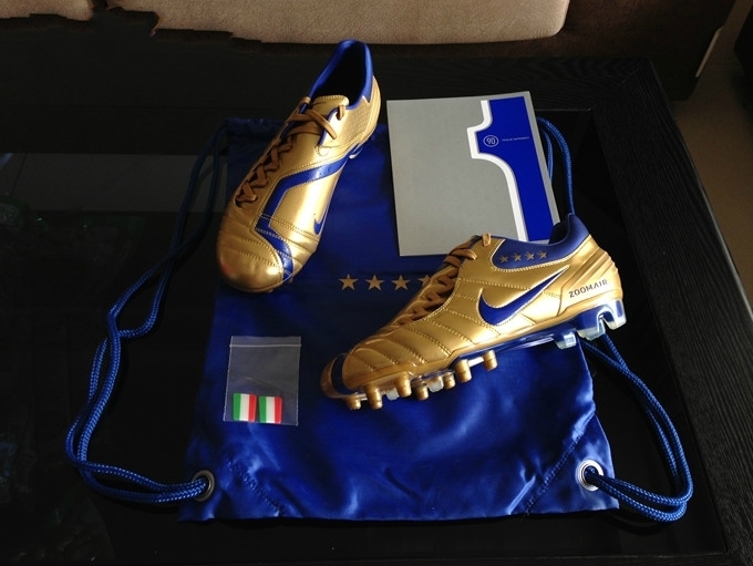 2006年世界杯结束后,金靴就泛滥了,nike突发奇想,给意大利队的几个nike赞助的球员全部都配上了金靴,其中包括刺客的马特拉齐、传奇的皮尔洛、还有t90的加图索和赞布罗塔,可能还有吉拉迪诺。这三双鞋的盒子到鞋垫,都和一般的量产不一样,产地也都是意大利,体现出了足够的诚意。金色mv3现在是刺客中的佼佼者,金色传奇意大利,也是一靴难求,相对来说t90的稍微好点,但目前也不多见了。