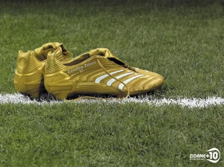 第二双又是和齐达内有关,当然名气也大很多,2006年世界杯决赛,齐祖穿着金色猎鹰8登场,本有机会第二次高举大力神杯的齐祖,最后留下的只是遗憾美,但是他的金色absolute战靴,却成为了一个神话。
