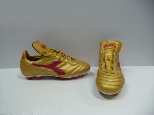 据我所知,最早的金色足球鞋,应该是diadora在1996年左右发售的这款鞋,虽然不是限量配色,但是应该和当时diadora旗下的球星乔治-维阿有一定关系,当时乔治-维阿代言的club pro系列,虽然他穿的鞋是高度的定制,但是在他得到金球奖后,diadora的club pro和brasil两个系列,都出了金色战靴,由于年代久远,金色的这两款鞋还是非常少见,不过还是有些图片为证。