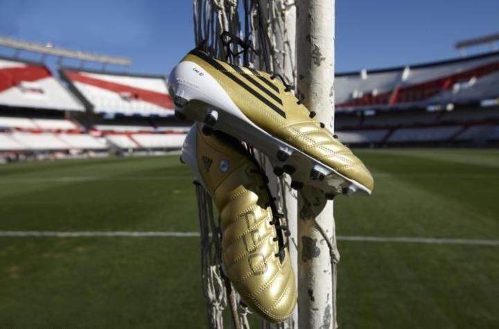 随着梅西拿下又一个金球奖,adidas的adizero也有金色,不过这款金色塑料板,质感不太到位。
