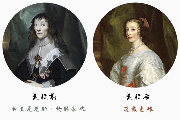 同时代画家科里尼厄斯·约翰逊和范戴克各自笔下的玛利亚王后