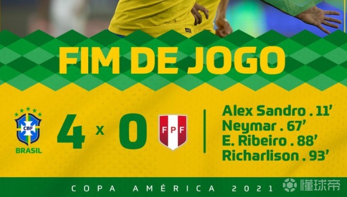 巴西队美洲杯2战已打进7球,与剩余9队目前进球总和持平桀骜丶野心家 @懂球帝2021-06-18 10:32巴西4-0大胜秘鲁,美洲杯前两战打进7球,进球数与剩余九支参赛球队持平。本届美洲杯,巴西3-0击败委内瑞拉,今天又在第二战4-0击败秘鲁。两场美洲杯后,巴西的进球数已经达到了7球,与剩余9个参赛队总和持平,分别是巴拉圭3球、智利1球、阿根廷1球、玻利维亚1球、哥伦比亚1球。展开更多