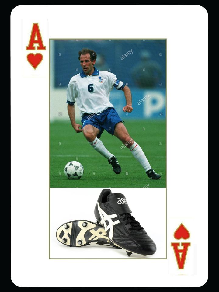 但要论asics赞助球员的地位,毫无疑问,巴雷西才是老大。作为米兰历史上最伟大的球员,他从1988年欧锦赛就开始使用asics球鞋,属于非常早的asics代言人,他当时已经是球队的队长。在我们的印象中,巴雷西就是使用asics足球鞋,虽然他早期和退役前也为其他品牌代言过。巴雷西在1994年世界杯上,穿的asics球鞋名字叫mancini。这款鞋是意大利产的球鞋,采用的是牛皮材料,当时非常流行。