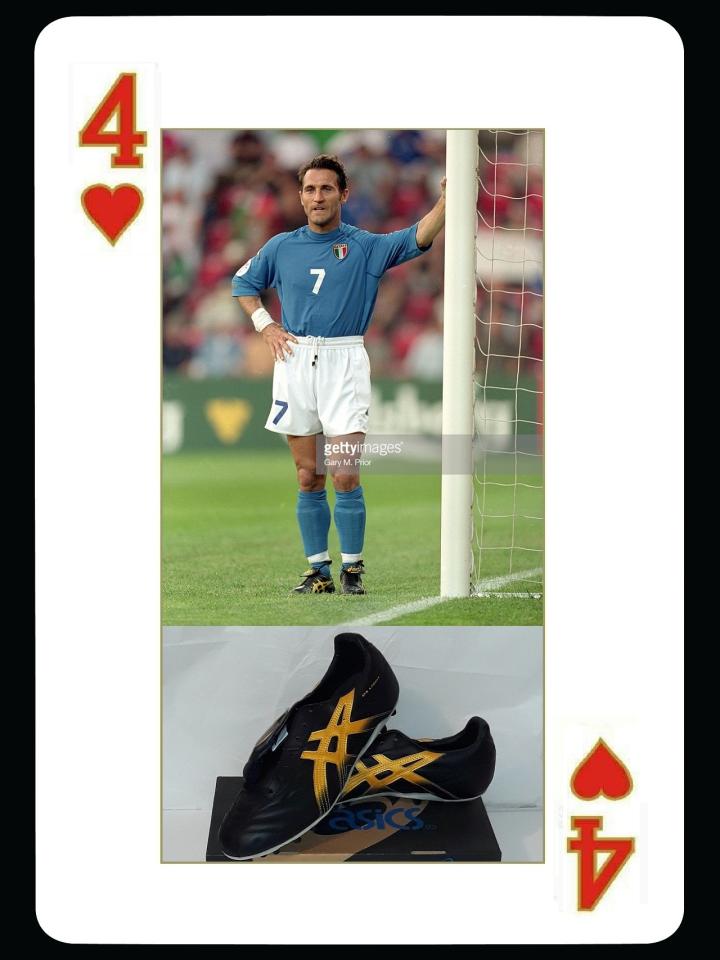 在意大利队中,还有一位老将也是asics的代言人,他就是低调的小战士迪利维奥,虽然迪利维奥其貌不扬,都一直是意大利队教练最爱的工具型球员。他在尤文图斯时期签约asics,一直和这个品牌相依为命,迪利维奥在2002年世界杯上痛骂黑哨莫雷诺,之后又跟着佛罗伦萨降入第四级联赛不离不弃。迪利维奥队球鞋没有啥特别的偏执,各种款式他都使用,还使用过最早的ds light球鞋,和asics的合作也一直延续到他退役。