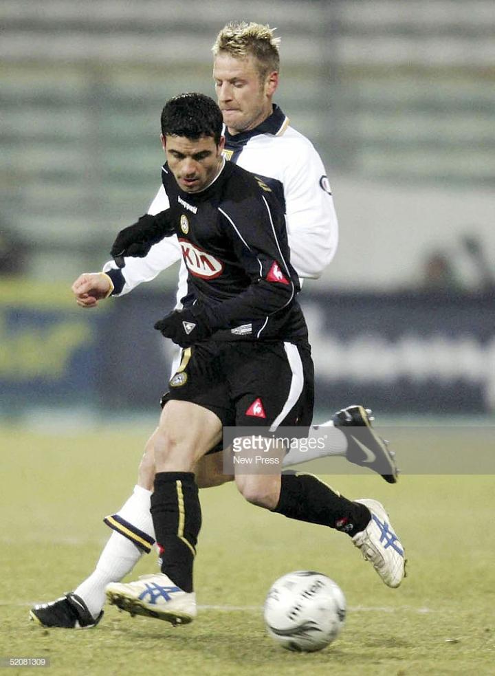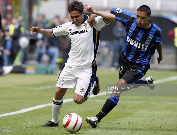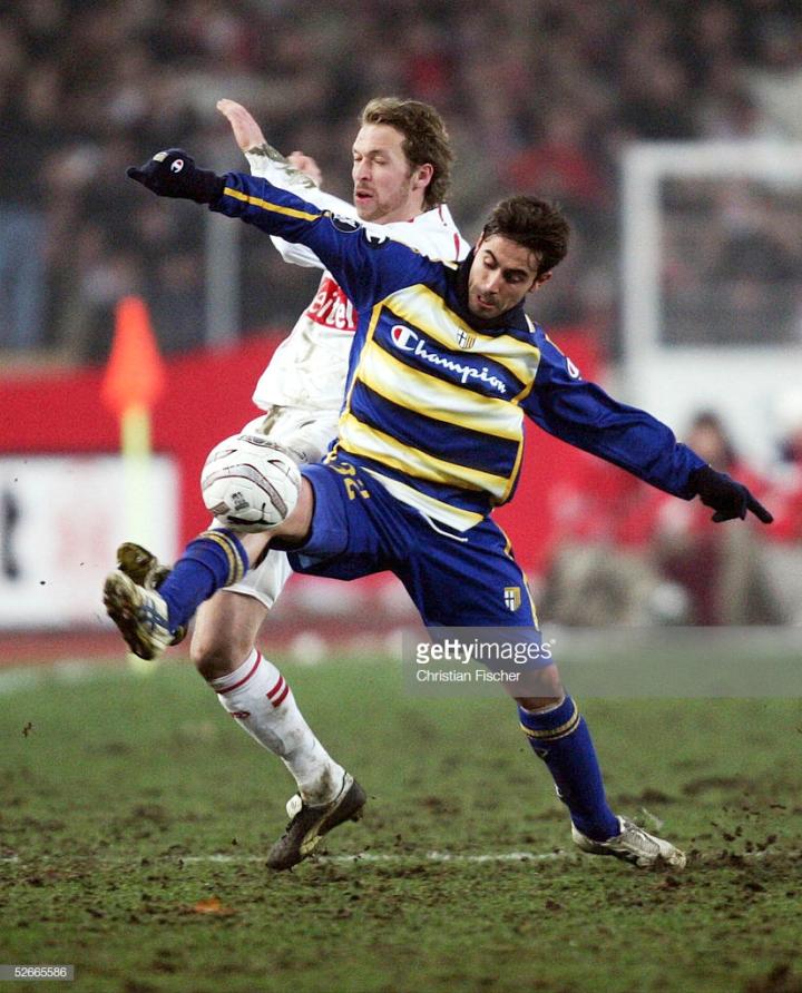 和迪利维奥一样,下面这位代言人也效力过尤文图斯和佛罗伦萨,意大利中场马尔基奥尼,他是当时意大利比较优秀的右前卫,在帕尔马将中田英寿挤到了替补席。之后转会去到因电话门降级尤文图斯,却因为伤病未在尤文图斯立足,马尔基奥尼最爱使用asics的白色款testimonial,这款鞋是2008年发布经典复刻版本。离开尤文图斯后之小马哥加盟了佛罗伦萨当时球鞋穿的还是asics,直到再次加盟帕尔马,才换了puma球鞋。