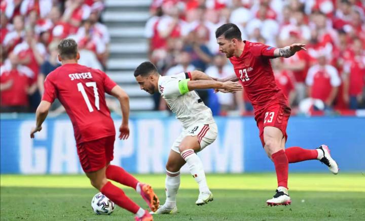 北京时间6月18日0时,欧洲杯B组比赛,欧洲红魔比利时对阵丹麦。比赛第2分钟,丹麦球员赫伊别尔助攻波尔森破门,丹麦取得梦幻开局。第55分钟,德布劳内助攻索尔根-阿扎尔扳平比分。第70分钟,阿扎尔助攻德布劳内破门,直至比赛结束,比利时2:1丹麦。