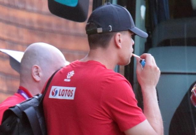 这位波兰国门准备离开索波特球队下榻的酒店,他在球队大巴车前手里拿着一包香烟和一个打火机,然后在队友面前抽了一根。波兰队当时正准备前往机场,然后飞往塞维利亚参加与西班牙的小组赛。