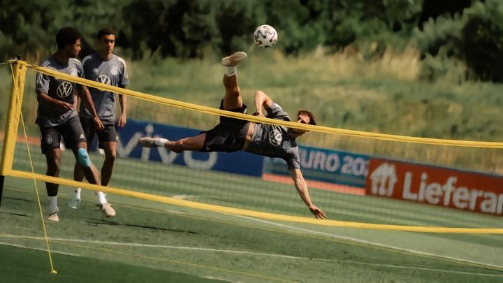 在欧洲杯前两轮小组赛中,德国队取得1胜1负的成绩。当地时间周三晚,德国队将在拜仁慕尼黑主场安联球场迎来小组赛的第三个对手匈牙利。在周一的训练中,德国队玩起了网式足球。