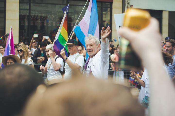 摄于2019年7月伦敦骄傲游行期间,“万磁王”伊恩·迈凯伦等名人也参加了活动