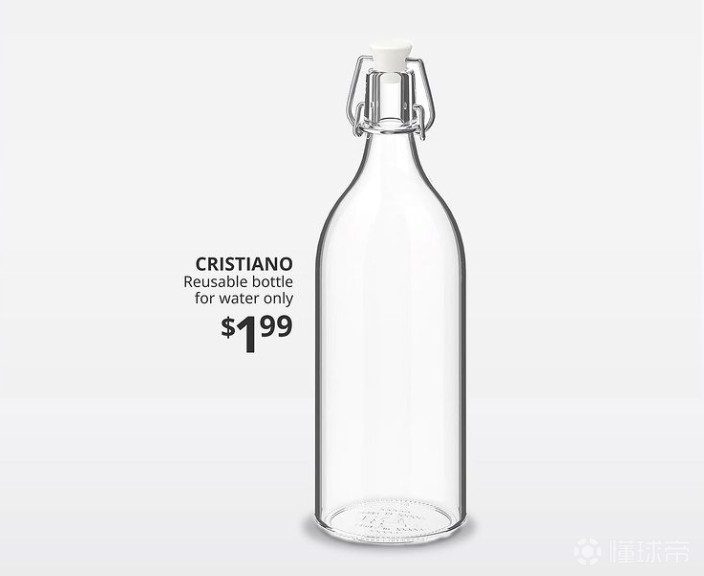 “喝白水,可持续”!宜家推出“C罗”玻璃瓶,仅限装白水哦