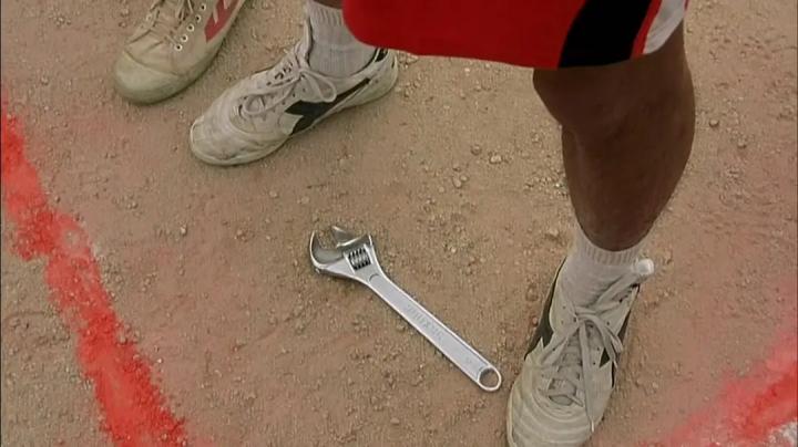 在少林足球队第一场的比赛中,对手是支臭名昭著的业余球员,他们的队长在开赛前“不慎”掉落了随身携带的扳手锤子,虽然锋哥(吴孟达)没有予以阻止,但按照规则,别说这种大型武器,任何可能伤及自己和其他队员的装备和物件(包括珠宝首饰)都是明令禁止的。