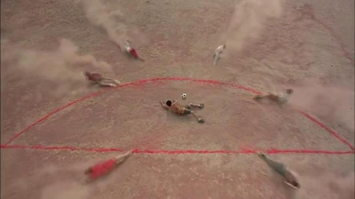 少林足球队与魔鬼队的决赛堪称影片重头戏,由于注射禁药,魔鬼队的身体素质发生了质变,不是一般的钢。