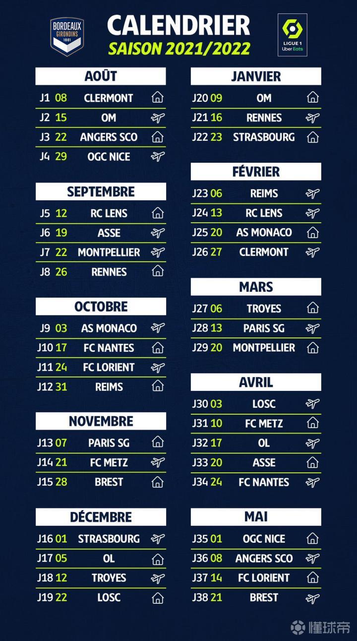官方|法甲2021/2022赛季赛程已出炉!当地...波尔多足球俱乐部 @懂球帝2021-06-25 22:27官方|法甲2021/2022赛季赛程已出炉! 当地时间8月8日,我们将在首场比赛中主场迎战升班马克莱蒙队! 8月15日,客场挑战老对手马赛队! 全力冲刺备战新赛季,Allez Bordeaux!展开更多