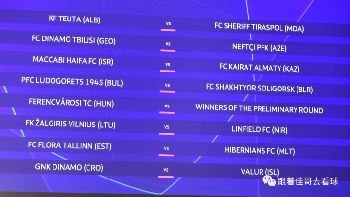 欧冠冠军组资格赛第二轮对阵:两回合,7月20/21日和7月27/28日,排名在前者先踢主场