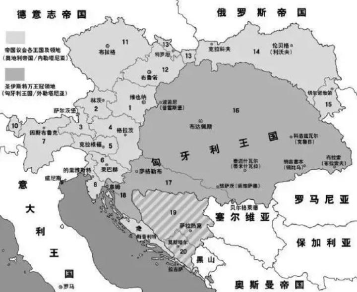 在捷克独立后,由于地盘太小,捷克也经常成为其他大国的附属国。最后,捷克和斯洛伐克一起成为了奥匈帝国的一部分——但前者主要由奥地利人统治,而后者主要被匈牙利统治。