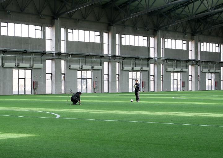 经过一个月的紧张施工,亚泰净月基地室内足球场人工草坪铺设完毕。俱乐部随即启动了国际足联场地认证申请工作。4月29日,国际足联检测机构驻中国实验室来到亚泰净月基地,对室内足球场人工草坪进行了详细测量和检测。国际足联场地检测由实验室检测和场地检测两部分组成,分别对场地的施工、选材和现场实际测量数据等进行检测评估。