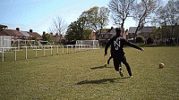 当防守者站在一边的时候,很难穿裆,所以我们要做的是做一个假动作,让他们在身体水平的时候做动作,如果我们看到他们的臀部变水平了,那我们就可以从他们的腿间踢到另一边,但是如果他们是侧身的话,我们就得先让他们失去平衡。