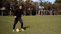 这个动作我们只需要两次触球,首先,我们要用脚内侧将球停住,最重要的是我们要把球控制在我们脚内侧范围,这意味着我们要让我们的双肩朝向防守者,我们可以沿着边线下底或者内切。