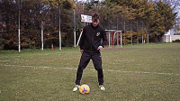 这个动作本身是两次干净的触球,从我们的脚内侧触球开始,我们向内轻轻触球看似要穿过身体。