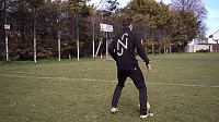 最后一步显然是切球,我们用惯用脚触球踩单车,现在用弱势脚的脚内侧把球切回来,这样我们就可以得到穿裆了。