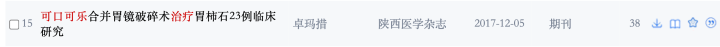 [图]在阅读相关文献资料后,我了解到传统方法治疗使用α-糜蛋白酶治疗胃石症,疗程结束后2周复查胃镜依然会发现部分病例存在结石。这不但增加了住院周期,又增加了患者的经济负担,相比较而言使用可口可乐是最安全、最保险的办法