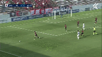 连丢两球的忠南牙山FC开始孤注一掷进攻,利用一次角球机会,亚历桑德罗大力远射终于扳回一城。