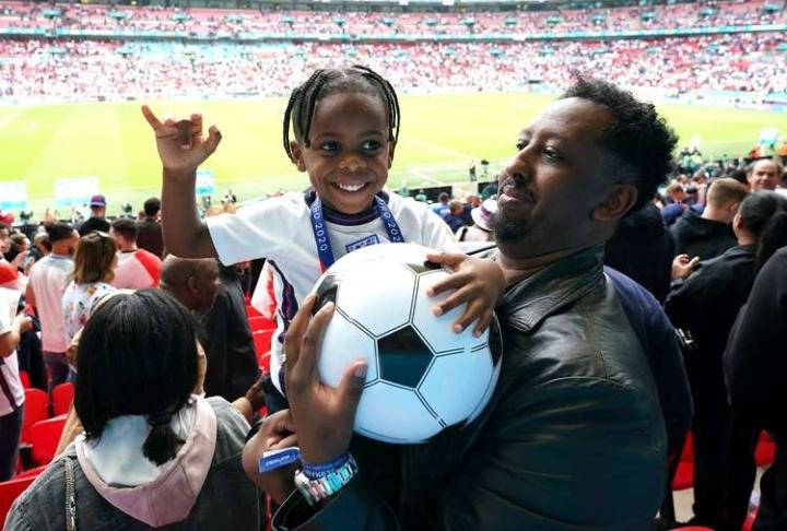 在英格兰对阵德国的欧洲杯八分之一决赛上,英格兰进球功臣斯特林的儿子也来到了现场,为爸爸加油。
