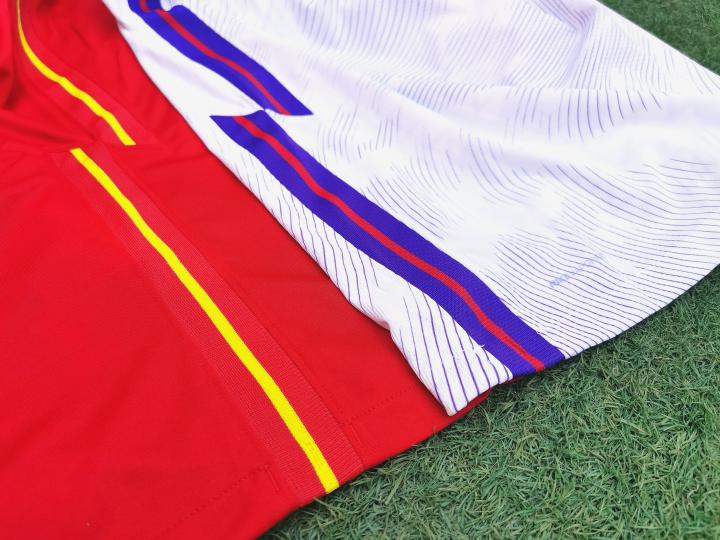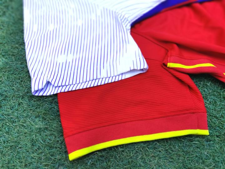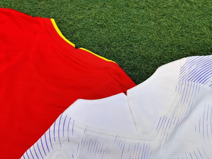疫情不仅打乱了世界足球大型比赛的赛程安排,也让很多品牌准备大干一场得新球衣发布被拆解得支离破碎。原计划于去年第二季度和第三季度发布的中国国家队主场和客场战袍,不得不取销了原有声势浩大的发布计划,而提前曝光的球衣图片也让最终的商品以一种"雷声小,雨点更小"的形式在各大电商平台上悄然上架。主场球衣依旧延续了红/黄主色系得搭配,整体球衣版型和20-21赛季的热刺队同属一个模板,特别在球衣肩部锁骨位置印上了"CFA"(中国足协)及"中国"字样,相当特别。
