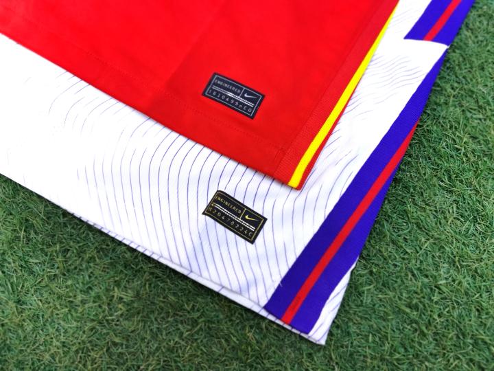 无论是主场还是客场球衣,腰部均采用了"闪电裂纹"这种极富视觉冲击感的撞色织带去修饰腰线,让穿着者在奔跑中更具动感。延续了先前男女足球衣版本区分的简易识别方法,男款的内领标为龙的图案,而女足则为凤的图案,而这两个图案的设计,我个人还是非常喜欢呢。