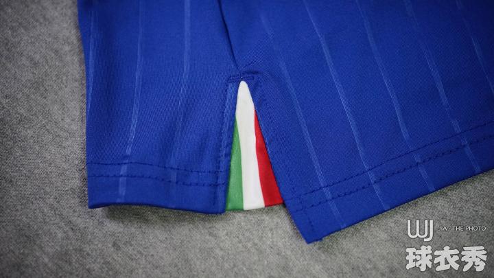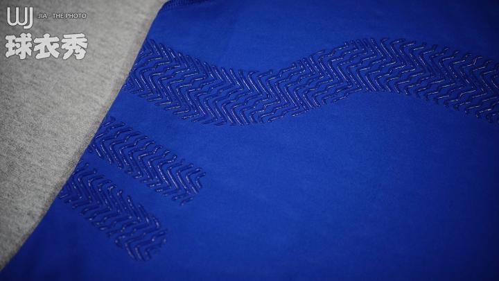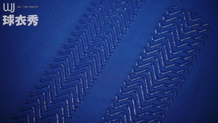 ↑意大利时装传统精致的一面则体现在球衣的正面、背面和袖子上的浮雕细纹中。