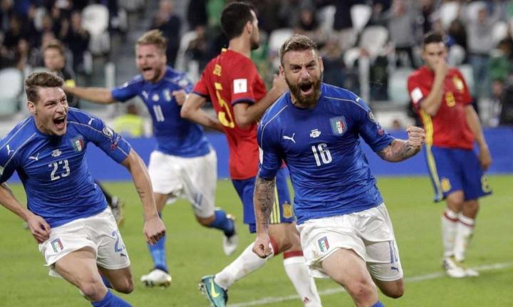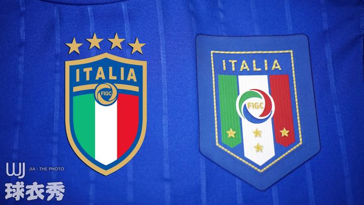↑在旧版队徽沿用了12年之后,2017年10月意大利足协(FIGC)发布了他们全新的logo(图左),国旗镶嵌在意大利队著名的蓝色盾牌之中,顶部四颗金色的五角星代表意大利队在1934、1938、1982和2006年赢得的四个世界杯冠军。