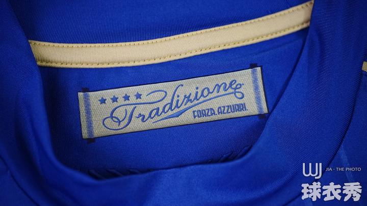 ↑衣领上胶印的小标印有四颗星以及FORZA AZZURRI!(加油蓝衣军团!)