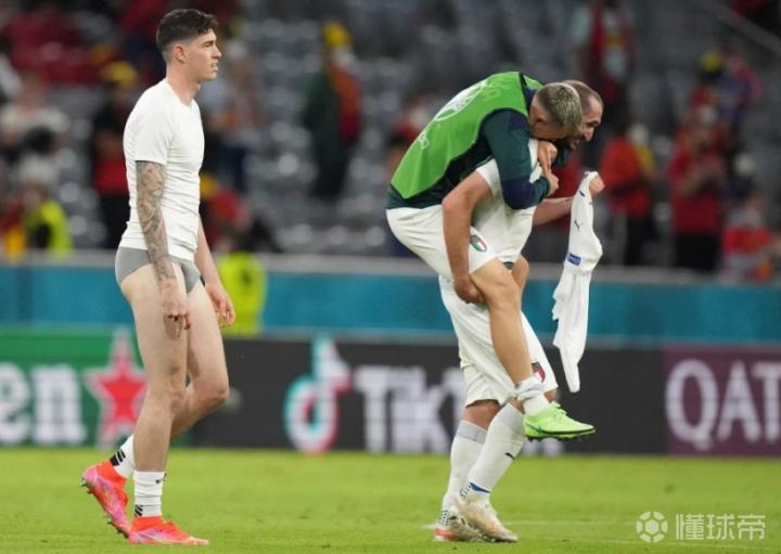 从转播画面中可以看到,迪洛伦佐在赛后将自己的球裤塞给了场边激情庆祝的意大利球迷,只穿着上衣和内裤回到球场。除了迪洛伦佐之外,还有贝洛蒂、巴斯托尼等人也在庆祝活动中向球迷献上了自己的球裤。