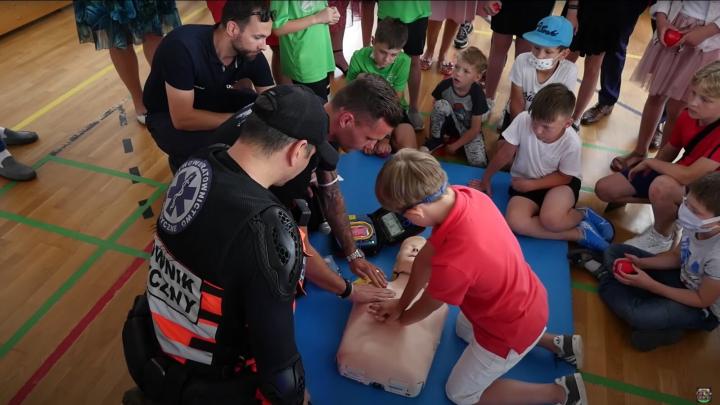 (图:吉凯维奇教学生如何进行心脏复苏)