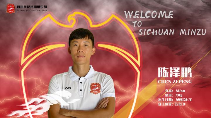 经与球员本人友好协商并达成一致,陈泽鹏正式加盟四川民足足球俱乐部。