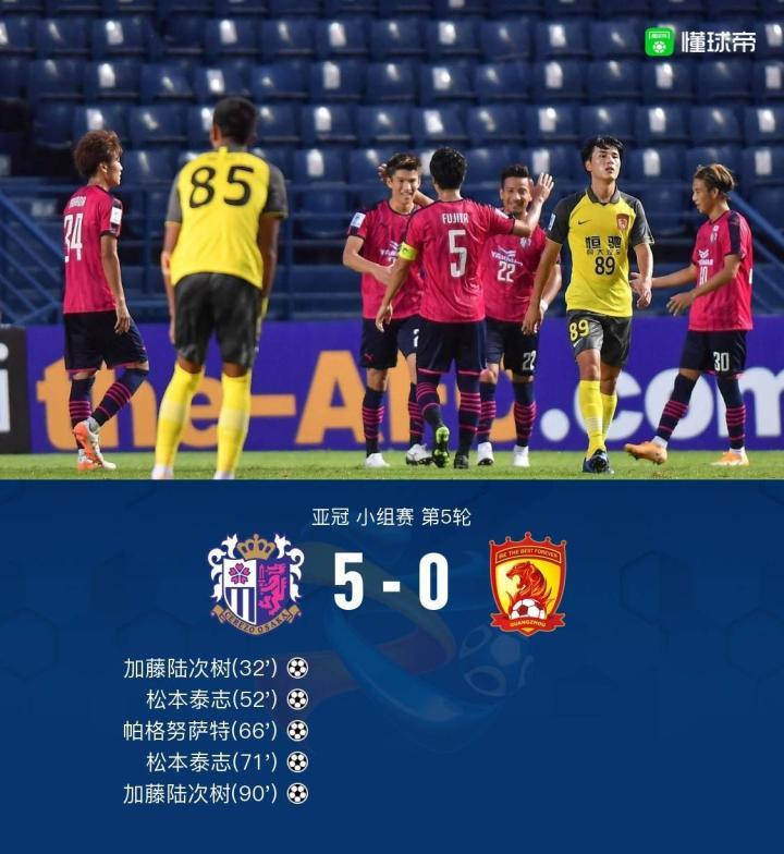 北京时间7月6日18:00,亚冠小组赛J组第5轮继续进行,广州对阵大阪樱花。上半场,松田力头槌击中横梁,随后加藤陆次树包抄扫射首开记录。下半场,松本泰志与加藤陆次树先后完成梅开二度,帕格努萨特替补头槌建功,阮赛与黄开洲接连错失良机。最终,广州0-5惨败大阪樱花,遭遇五连败。